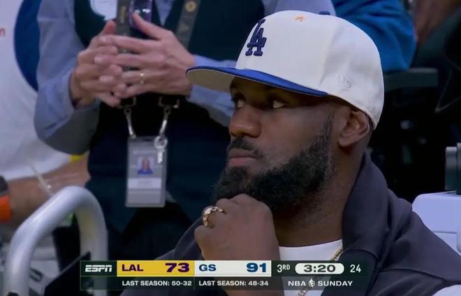 本場比賽詹姆斯坐在替補席觀看兒子布朗尼比賽,而布朗尼也比較爭氣,6投2中,三分球3投1中!表現比第一場12投1中好太多了。