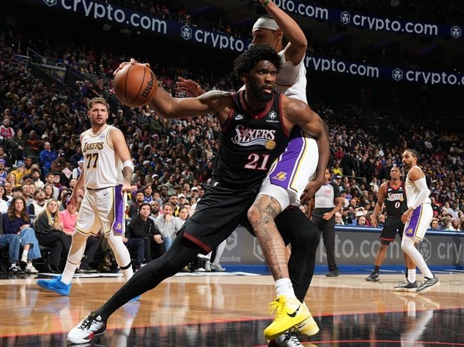 本賽季恩比德年薪是5522萬美元,和約基奇一樣并列聯(lián)盟第二,僅次于庫里。當(dāng)約基奇貢獻(xiàn)場均29.4分12.1籃板10.7助攻的全能數(shù)據(jù),連續(xù)數(shù)周霸占官方MVP首位時,恩比德開賽以來,只打了11場比賽,場均20.5分6.6籃板2.8助攻,兩項命中率已經(jīng)跌到42%+22%!最有趣的是,賽季前6場比賽,恩比德在場球隊一直輸分,他不在場時(負(fù)荷管理)馬克西和埃奇庫姆帶隊填坑。等到11月份,又遭遇膝蓋傷勢,休戰(zhàn)3周時間,這一次復(fù)出后,也曾在對陣步行者時爆砍39分9籃板,但打完這場再打老鷹后,恩比德又傷了。